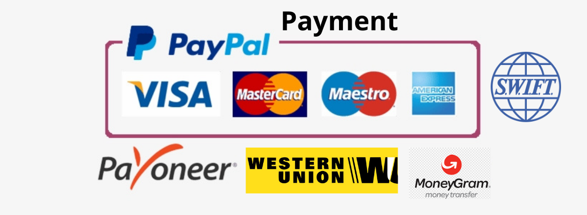 We accept payment Western Union, Paypal, Swift, Payoneer, P2P., Paysend, Unistrim, MoneyGram, Swift transfer, Transfergo.